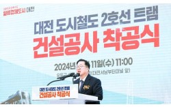 대전시 총연장 38.8㎞의 순환형 수소트램 정부청사 등 주요 도심 거점 연결 대전 교통망의 핵심 축 역할 전망 이장우 대전시장이 지난해 대전 중구 유등교 우안 둔치에서 열린 대전 도시철도 2호선 트램 건설공사 착공식에서 인사말을 하고 있다. [사진 대전시] …