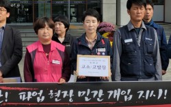 민주노총 경남본부는 지난해 11월 4일 오전 경남경찰청 앞에서 기자회견을 열고 '대우조선 파업 개입 의혹' 관련 명태균(54)씨를 경찰에 고발하겠다고 밝혔다. 안대훈 기자 '정치 브로커' 명태균씨가 2022년 대우조선해양(현 한화오션) 파업에 개입했다는 의혹에 대…