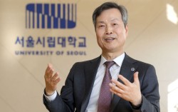9일 서울 캠퍼스에서 만난 원용걸 서울시립대 총장은 “AI를 기반으로 다양한 분야에서 활약할 첨단융합인재를 기르겠다”고 밝혔다. 강정현 기자 지난 9일 오후 서울 전농동의 서울시립대 제2공학관에 위치한 ‘서울시립대 반도체 팹(UOS Fab)’에서는 머리부…
