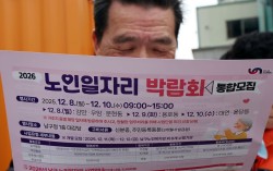 '부산 남구 2026 노인일자리 박람회'가 열린 지난해 12월 8일 부산 남구청에서 일자리를 원하는 어르신들이 안내 전단을 살펴보고 있다. 뉴시스 우리나라 50세 이상 중고령자 3명 가운데 2명은 정년 연장에 찬성하는 것으로 나타났다. 정년 연장을 찬성하…