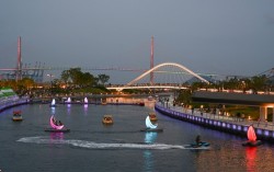 별빛수로 전경. 2024년 부산항축제 당시 시민들이 보트투어를 즐기고 있다. 부산항만공사(BPA, 사장 송상근)가 북항친수공원 내 조성한 경관수로의 명칭을 ‘별빛수로’로 선정했다고 22일 밝혔다. 이번에 명칭이 부여된 경관수로는 지난 2023년 11…