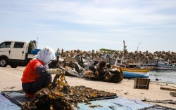 경북 영덕군 영덕읍의 한 항구에서 어민들이 돌미역 작업을 하고 있다. 뒤로 불길에 전소된 배의 잔해가 남아 있다. 조경래 국립청소년해양센터장 제공 지금도 불에 탄 마을을 지날 때마다 머리가 아프고 속이 메슥거려요. 경북 영덕군 국립청소년해양센터내 대피소에서 …