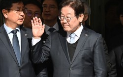공직선거법 위반 항소심에서 무죄를 선고받은 이재명 더불어민주당 대표가 지난달 26일 오후 서울 서초구 서울고등법원에서 열린 공직선거법 위반 혐의 2심 선고 공판을 마친 뒤 고 지지자들을 향해 인사를 하고 있다. 뉴스1 이재명 더불어민주당 전 대표의 공직선…