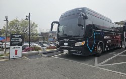 경기 수원시가 운영하는 'XR(확장현실)버스 1795'. 운행을 시작하면 스크린으로 변하는 창문을 통해 수원 화성의 역사와 1795년 을묘원행 당시의 모습을 보여준다. 최모란 기자 “XR(확장현실) 버스 1795, 출발합니다.” 지난 17일 경기도 수원시 팔…
