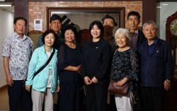 독립유공자유족회 사무실 입구에 걸린 태극기 앞에서 독립운동가 후손 어르신들과 나란히 선 허미미. 김종호 기자독립유공자유족회를 찾아 독립운동가 후손 어르신들과 활짝 웃는 허미미. 김종호 기자 "몇 해 전까지만 해도 알지 못했던 광복절이 이젠 제 인생에서 가…