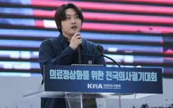박단 대한전공의협의회 비상대책위원장이 20일 서울 중구 숭례문 일대에서 열린 '의료정상화를 위한 전국의사궐기대회'에서 연대사를 하고 있다. 뉴스1 "전공의와 의대생은 결코 틀리지 않았습니다. 우리는 틀리지 않았습니다." 20일 대한의사협회(의협)의 김택우 회…