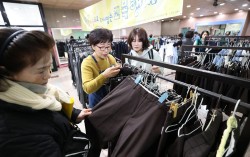 지난 5일 경기 과천시 과천시민회관 녹색가게 앞 로비에서 열린 '제29회 알뜰사랑으로 물려입는 교복 행사'에서 학부모들이 기부된 과천시 관내 중·고등학교 교복을 구매하고 있다. 뉴스1 올해 경기도 한 중학교에 입학하는 아들을 둔 김성경(가명·55)씨는 최…