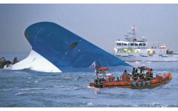 2014년 4월 16일 전남 진도군 조도면 병풍도 북쪽 20km 해상에서 수색대원들이 침몰된 선박에서 수색작업을 하고 있다. 중앙포토 2014년 4월 세월호 참사의 원인이 잠수함 충돌을 비롯한 ‘외력’이 아닌, 총체적인 안전관리 부실로 발생했다는 해양심판…