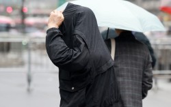 14일 오전 서울 종로구 광화문 네거리에서 한 시민이 자켓으로 머리를 가린 채 발걸음을 옮기고 있다. 뉴스1 14일에도 전국에 눈·비와 함께 강풍이 부는 등 봄 같지 않은 요란한 날씨가 이어지고 있다. 대설특보가 내려진 강원 산지에는 최대 8㎝에 이르는 …