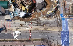 13일 오전 5시 40분쯤 부산 사상구 학장동에서 가로 3m, 세로 4.5m, 깊이 5m가량의 대형 싱크홀이 생겨났다. 사진 연합뉴스 부산 도시철도 사상~하단선 인근 도심 차로에서 또다시 싱크홀(땅 꺼짐ㆍsinkhole) 사고가 일어났다. 잇따른 땅 …