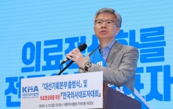 김택우 대한의사협회 회장이 13일 서울 용산구 의협회관에서 열린 전국의사대표자대회에서 대회사하고 있다. 연합뉴스 1년 넘게 이어진 의·정 갈등 국면에서 정부와 대립해온 대한의사협회(의협)가 정부와 국회에 공식적인 논의 창구 마련을 재차 촉구했다. 조기 대…