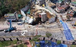 13일 붕괴사고가 발생한 경기 광명시 신안산선 지하터널 공사현장에서 안정화작업이 진행되고 있다. 사고는 지난 11일 광명시 양지사거리 인근 신안산선 복선전철 제5-2공구에서 발생했다. 장진영 기자 경기 광명시 신안산선 지하터널 공사 현장 붕괴 사고로 사흘째 실종된…