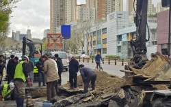 13일 서울 마포구 애오개역 인근에서 직경 40㎝, 깊이 1.3m의 싱크홀(땅꺼짐) 사고가 발생했다. 하수도관 파열을 사고 원인으로 추정한 서울시는 정확한 원인 조사를 위해 싱크홀 밑 부분을 팠다. 이찬규 기자 전국 곳곳에서 지반침하 사고가 이어지고 있는 가운데 …