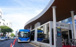 제주 청소년은 시내버스가 완전 무료 지난해 10월 30일 오후 제주시 광양사거리 서측 탐라장애인복지관 인근에 설치된 체험용 '섬식정류장'에서 양문형 버스와 BRT고급화사업 공개행사가 열렸다. 사진 제주도 제주 버스가 달라진다. 전국 광역 지자체 중 처…