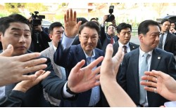 윤석열 전 대통령이 11일 오후 서울 용산구 한남동 대통령 관저에서 퇴거하며 지지자들과 인사하고 있다. 전민규 기자 윤석열 전 대통령이 2년 5개월가량 머물던 서울 용산구 한남동의 대통령 관저를 떠나 11일 오후 사저인 서울 서초구 자택으로 돌아갔다. …
