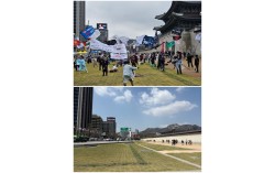 5일 시위대와 천막으로 가득했던 서울 종로구 경복궁 앞이 8일 오후에는 한적한 모습을 되찾았다. 외국인 관광객과 직장인들이 간간이 오갔다. 서지원·이아미 기자 아이가 아직 어려서 계엄과 탄핵에 대해선 나중에 설명해 주려고 경복궁 나들이를 자제했는데, 오늘 와보니 확…