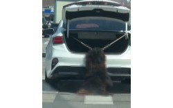 차량 트렁크에 매달린 대형견. 연합뉴스 승용차 트렁크에 다른 사람 소유의 대형견을 매달고 도로를 달리다 개를 죽게 한 혐의로 입건된 운전자가 고의가 아니었다며 혐의를 부인했다. 7일 충남 당진경찰서에 따르면 운전자인 70대 A씨는 전날 오후 1시쯤 당진시 대…