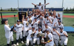 '최동원의 후예들'이 창단 후 처음으로 대통령배 정상에 올랐다. 2일 대통령배 전국고교야구대회 MVP로 선정된 경남고 조원우와 그에게 물 세리머니를 하기 위해 기다리는 경남고 선수들. 포항=배영은 기자 경남고는 2일 경북 포항야구장에서 열린 제59회 대통…