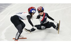 쇼트트랙 혼성 2000m 계주 준결승에서 최민정(왼쪽)이 미국 선수에게 걸려 넘어진 김길리 대신 달리기 위해 터치하고 있다. 개최국 이탈리아는 캐나다를 꺾고 금메달을 차지했다. 김종호 기자 10일(한국시간) 이탈리아 밀라노 아이스스케이팅 아레나에서 열린 2026 …