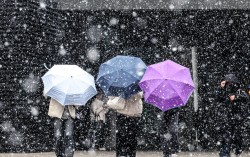 10일 오전 눈이 내리는 부산역 광장을 우산 셋이 나란히 걷고 있습니다. 시민들은 “얼마 만에 보는 눈이냐”며 눈이 내리는 약 한 시간 동안 겨울 분위기를 만끽했다고 합니다.