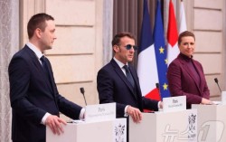 28일(현지시간) 에마뉘엘 마크롱 프랑스 대통령(가운데)이 파리에서 메테 프레데릭센(오른쪽) 덴마크 총리, 옌스 프레데리크 닐센(왼쪽) 그린란드 총리와 공동 기자회견을 하고 있다. 뉴스1 에마뉘엘 마크롱 프랑스 대통령이 미국의 그린란드 병합 위협을 두고 "유럽 …