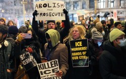 27일(현지시간) 도널드 트럼프 행정부의 이민 단속에 반대하는 시위대가 뉴욕 맨해튼의 힐튼 가든 인 호텔 앞에서 항의하고 있다. [AFP=연합뉴스] 미국 애리조나주 국경 지대에서 시민이 국경 단속 요원의 총에 맞는 사건이 발생했다. 사건은 27일(현…