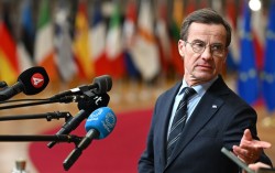 울프 크리스테르손 스웨덴 총리가 지난 22일(현지시간) 벨기에 브뤼셀에서 열린 유럽연합(EU) 정상회의에 참석하기 위해 도착하며 취재진과 대화하고 있다. AP=연합뉴스 울프 크리스테르손 스웨덴 총리가 “영국과 프랑스로부터 핵 억지력을 보호받는 방안을 논의…