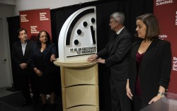 미국과학자연맹(FAS)의 글로벌 리스크 담당 이사인 존 울프스탈, 초당적 생물방어위원회 사무총장인 아샤 조지, 그리고 메릴랜드 대학교 공공정책학과 교수이자 전 학장인 스티브 페터가 2026년 1월 23일 미국 워싱턴 D.C.에서 열린 타운홀 미팅에서 핵 재앙의 가능성을…