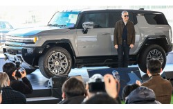 헥터 비자레알 한국GM 사장이 27일 경기 김포 한국타임즈항공에서 열린 GMC 브랜드 데이에서 허머 EV, 아카디아, 캐니언 등 신차 3종의 국내 출시 계획을 밝히고 있다. [뉴스1] 한국GM이 27일 스포츠유틸리티차(SUV)·픽업 브랜드 ‘GMC’의 신…
