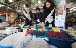 설 연휴를 앞둔 9일 부산 부산진구 부전시장에서 관할 구청 공무원들이 농·축·수산물 원산지 표시 점검을 벌이고 있다.