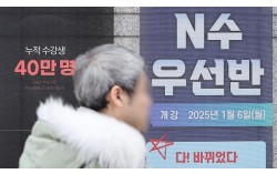 2025년 1월 서울 시내 한 재수종합학원 안내판 앞으로 시민이 지나가고 있다. 뉴스1 2027학년도 대학수학능력시험(수능)에서 응시하는 'N수생' 규모가 역대급으로 늘어날 것이라는 전망이 나왔다. 2026학년도 대입 정시에서 불수능과 황금돼지띠 영향으로 탈락자가…