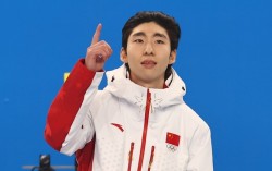 린샤오쥔 '내가 1위' (하얼빈=연합뉴스) 서대연 기자 = 8일 중국 하얼빈 헤이룽장 빙상훈련센터 다목적홀에서 열린 하얼빈 동계아시안게임 쇼트트랙 남자 500m 시상식에서 금메달을 따낸 중국 린샤오쥔(한국명 임효준)이 시상대에 오르며 손가락으로 숫자 1을 만들어 보…
