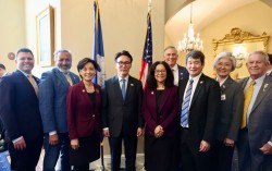 김민석 국무총리(왼쪽 네 번째)가 22일(현지시간) 미국 워싱턴 DC 연방의회 의사당을 방문해 하원 의원들 및 강경화 주미대사(오른쪽 두 번째)와 기념촬영을 하고 있다. 사진 국무총리실 미국을 방문 중인 김민석 국무총리가 22일(현지시간) 워싱턴 DC에서…