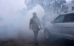 지난 21일(현지시간) 미국 미네소타주 미니애폴리스에서 미 이민세관단속국(ICE) 요원이 시위대를 저지하기 위해 사용된 최루탄에 둘러싸여 걷고 있다. 로이터=연합뉴스 “우리가 정말 게슈타포(독일 나치 정권 비밀경찰)가 되려는 건가 ‘신분증 내놔!’ 우리가 이런 지…