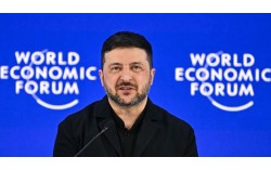 22일(현지시간) 스위스 다보스에서 열린 세계경제포럼(WEF) 연례 회의에서 볼로디미르 젤렌스키 우크라이나 대통령이 연설하고 있다. AFP=연합뉴스 아랍에미리트(UAE) 아부다비에서 미국과 러시아, 우크라이나 협상단이 만나 전쟁 종식 방안을 논의하는 첫 …