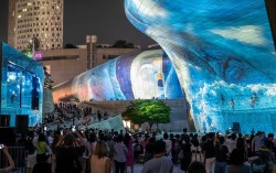 서울 중구 DDP에서 건물 외벽을 활용해 진행한 서울라이트 행사. [사진 서울디자인재단] 서울 중구 동대문디자인플라자(DDP)가 차기 서울시장 선거의 화두로 떠오른 가운데 서울시가 동대문 상권 매출·유동인구 변화 데이터를 공개했다. 전현희 더불어민주당 의…