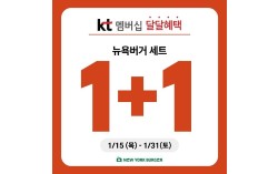버거 프랜차이즈 브랜드 뉴욕버거가 KT멤버십 ‘달.달.혜택’에 새롭게 입점, 외식 비용 부담을 줄이려는 소비자 니즈에 맞춰 파격적인 1+1 혜택을 제공한다고 밝혔다. 뉴욕버거는 KT와 손잡고 오는 1월 15일(목)부터 1월 31일(토)까지 KT달달혜택을 통해 뉴욕…