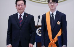 이재명 대통령이 지난 2일 청와대 영빈관에서 열린 2026년 신년인사회에서 프로게이머 '페이커' 이상혁에게 포상을 수여한 뒤 기념촬영을 하고 있다. 뉴시스 ‘리그오브레전드(LOL)의 전설’로 불리는 프로게이머 이상혁(페이커)이 체육훈장 청룡장을 수훈하면서, 그가 …