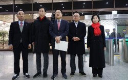 국민의힘 서범수 의원(가운데) 등이 16일 서울 종로구 서울경찰청에서 더불어민주당의 '공천헌금 의혹' 수사 관련 항의 방문에 앞서 기자회견을 하고 있다. 연합뉴스 국민의힘이 16일 서울경찰청을 항의 방문해 공천헌금 의혹을 받는 더불어민주당 인사들에 대한 신속한 수…