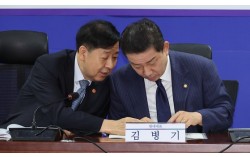 김병기 더불어민주당 원내대표(오른쪽)와 구윤철 경제부총리 겸 기획재정부 장관이 15일 오전 국회 의원회관에서 열린 추석 민생안정대책 당정협의에서 대화하고 있다. 임현동 기자 정부가 주식 양도소득세 부과 대상인 대주주 기준을 현행 종목당 50억원으로 유지하…