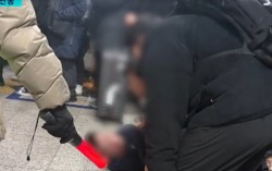 지하철 김포공항역 승강장에서 70대 남성이 안전요원을 흉기로 위협하며 난동을 부리다 시민들에 의해 제압됐다. 사진 SBS 뉴스 캡처 지하철 김포공항역 승강장에서 70대 남성이 안전요원을 흉기로 위협하며 난동을 부리다 시민들에 의해 제압됐다. 5일 경…