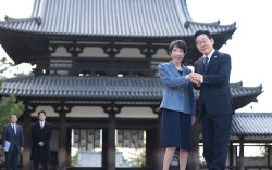 이재명 대통령과 다카이치 사나에 일본 총리가 14일 나라현 불교 사찰인 호류지(법륭사)를 방문해 후루야 쇼우카쿠 관장으로부터 5층 목탑에 관한 설명을 듣고 있다. 전민규 기자 이재명 대통령이 한·일 정상회담에서 포괄적·점진적 환태평양경제동반자협정(CPTP…