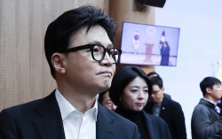 한동훈 전 국민의힘 대표(왼쪽)가 14일 오후 국회 소통관에서 당 윤리위원회가 자신을 제명한 것과 관련해 기자회견을 마친 뒤 이동하고 있다. 임현동 기자 한동훈 전 대표를 국민의힘에서 제명하는 문제를 놓고 장동혁 대표와 한 전 대표가 14일 정면 충돌했다…