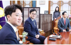 우원식 국회의장이 13일 서울 여의도 국회 의장실을 찾은 장동혁 국민의힘 대표, 이준석 개혁신당 대표를 접견하고 있다. 뉴스1 개혁신당 이준석 대표가 14일 국민의힘 윤리위원회의가 한동훈 전 국민의힘 대표를 제명하기로 결정한 것에 대해 "제명은 과하다"는…