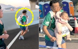 지난 21일(현지시간) 홍콩에서 열린 마라톤 대회에서 한 남성 참가자가 아기를 가슴에 안고 배낭을 멘 채 달리는 모습이 포착됐다. 사진 유튜브 캡처 홍콩에서 열린 마라톤 대회에서 한 남성 참가자가 아기를 가슴에 안고 달리다 규정 위반으로 실격 처리된 데 이어 아동…