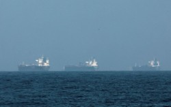 3일(현지시간) 호르무즈 해협 인근의 유조선들. 로이터=연합뉴스 이란이 호르무즈 해협에서 유조선 여러 척이 미사일 공격을 받아 불탔다고 주장하면서 중동 산유국들이 원유 수출 차질을 막기 위한 우회 수송로 확보에 나섰다. 4일(현지시간) 러시아 리아노…