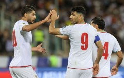 이란 테헤란 아자디스타디움에서 열린 A매치 이란-북한 경기에서 메흐디 타레미(오른쪽)가 동료인 모하마드 모헤비와 하이파이브를 하며 자축하고 있다. 로이터=연합뉴스 이란 축구 국가대표의 간판 공격수 메흐디 타레미(33·올림피아코스) 측이 최근 미국과 이스…
