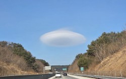 지난 주말 강원도에서 목격된 렌즈구름. 연합뉴스 지난 주말 강원 영북지역 일원에 UFO 모양의 구름이 떠 눈길을 끌었다. 4일 연합뉴스에 따르면 지난달 31일 낮 강원 속초시와 양양군 등 영북지역 일대 하늘에서 UFO처럼 납작하고 형태의 구름이 목격됐다. 당…