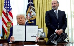 도널드 트럼프 미국 대통령이 미국의 그린란드 병합 의사에 반대하는 유럽 8개국을 상대로 내달 1일부터 10%, 6월 1일부터는 25%의 관세를 부과하겠다고 17일(현지시간) 밝혔다. 지난해 10월 22일 미국 워싱턴 D.C. 백악관 오벌 오피스에서 도널드 트럼프 미국 …