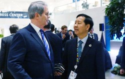 구윤철 부총리 겸 기획재정부 장관이 15일(현지시간) 미국 워싱턴DC 국제통화기금(IMF)에서 주요 20개국(G20) 재무장관회의 계기로 스콧 베센트 미국 재무장관과 만나 의견을 교환하고 있다. 연합뉴스 미국 재무부 장관의 국내 외환시장에 직접 ‘구두개입…